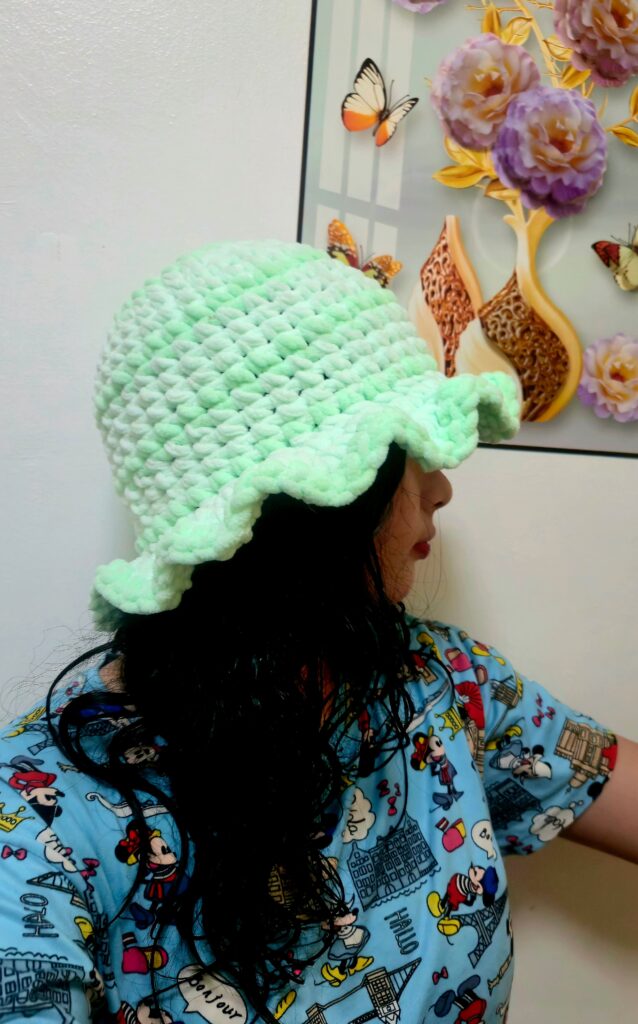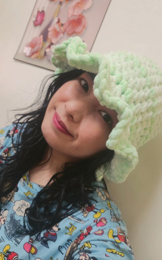 I wanted something “cute and fab” to wear, so I set my heart on a rounded beanie with ruffles.