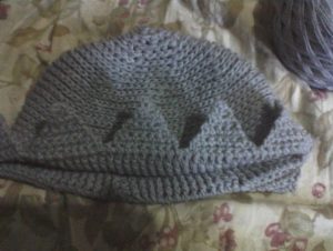 Row 19 – sl st in the edge of the “spike” until you reach the edge of the main hat.